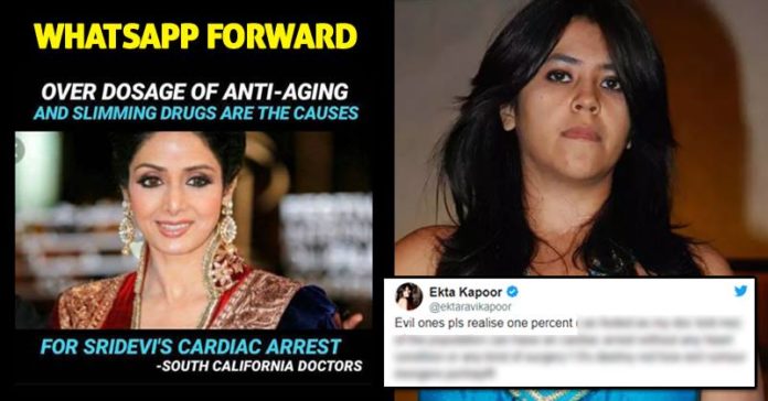 Evil ones pls realise one percent ( as fwded as my doc told me) of the population can have an cardiac arrest without any heart condition or any kind of surgery ! It’s destiny not how evil rumour mongers portray!!!— Ekta Kapoor (@ektaravikapoor) February 25, 2018