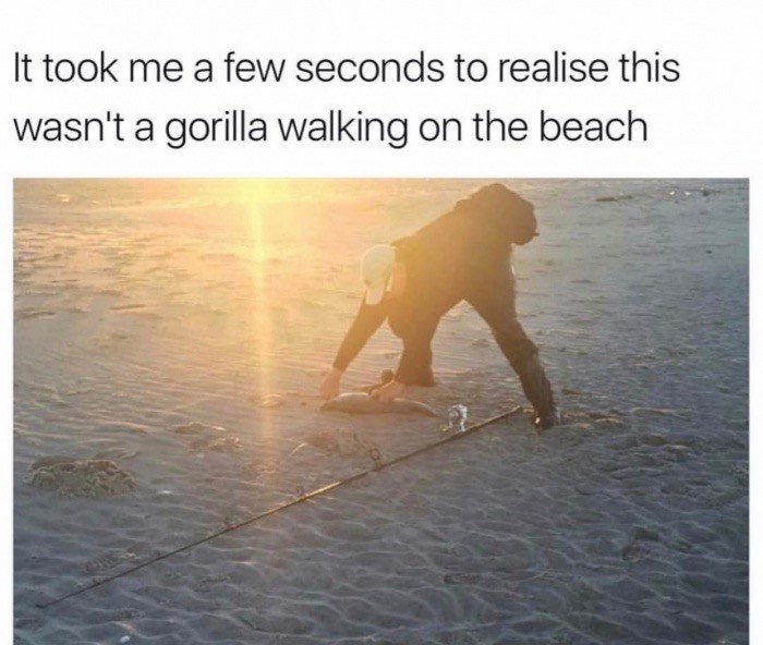 15. Gorilla escaped from the zoo and walking on the beach?